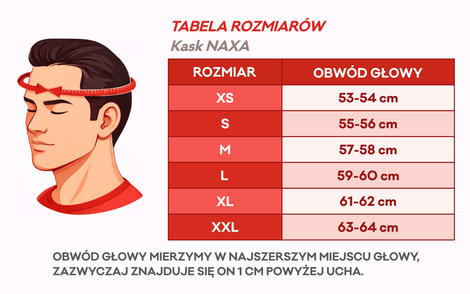 • Pokrowiec ochronny z logo NAXA – chroni kask przed zarysowaniami podczas przechowywania lub transportu.